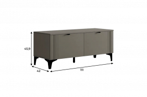Тумба оснащена двумя распашными дверцами, которые открывают доступ к просторным внутренним полкам, идеально подходящим для хранения посуды, бытовой техники, аксессуаров или других предметов. Металлические ручки придают изделию современный вид и удобство в использовании.
