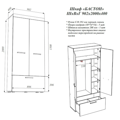 Шкаф Бастон (Эра) продается в интернет-магазине mebel-online-usurijsk.ru по цене 12 434 руб. Есть доставка по Уссурийску и Приморскому краю. Возможность подъема на этаж и сборки уточняйте у менеджера по телефону 8(800)505-27-11.